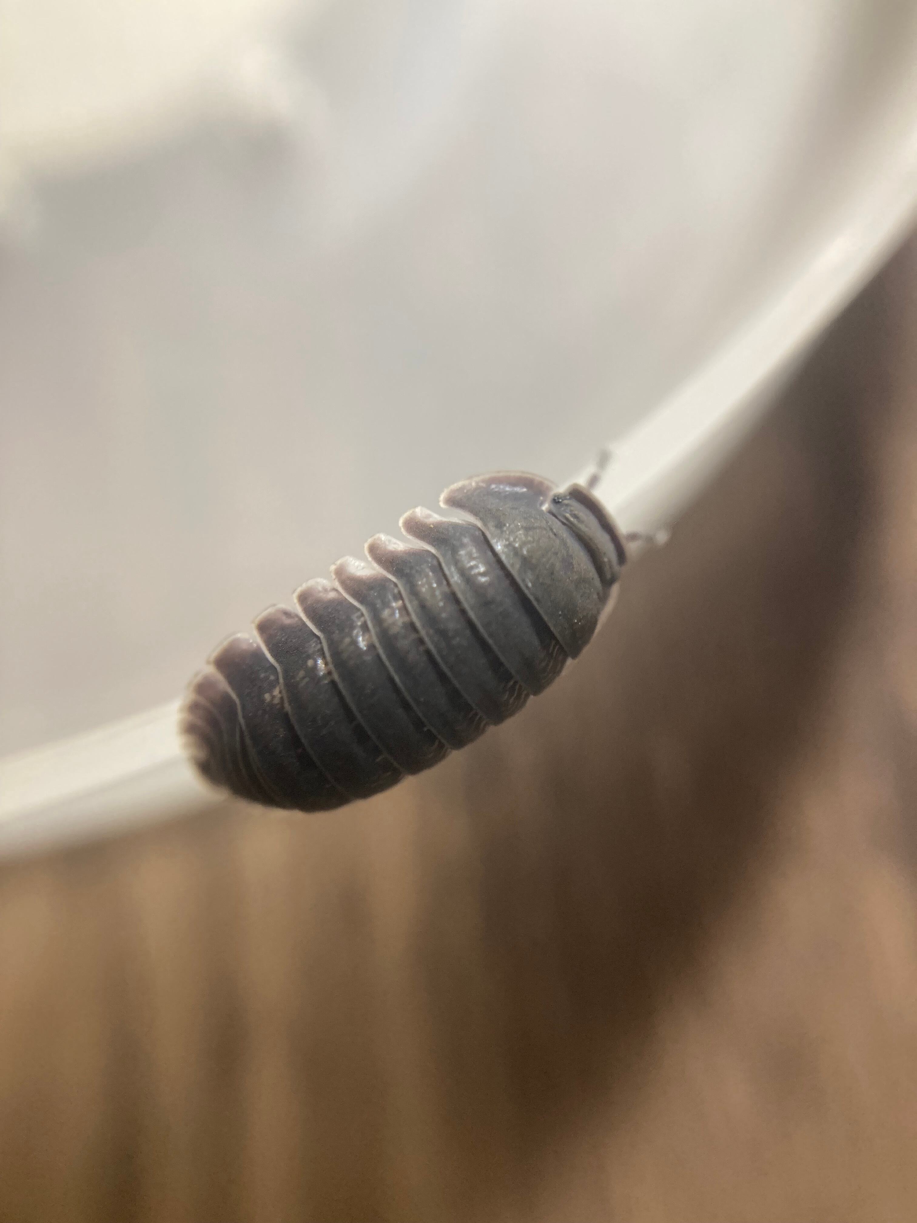 濃いめグレーに蓋が白い、もちっとしたダンゴムシ。